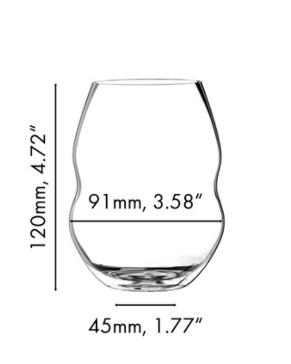 La serie tiene una forma ondulada con sutiles curvas, lo que facilita el agarre y permite girar el vino con especial facilidad. Con un pequeño movimiento de la mano, el vino se abre fácilmente y se airea con cada suave giro. Estas copas sin tallo son infinitamente versátiles.