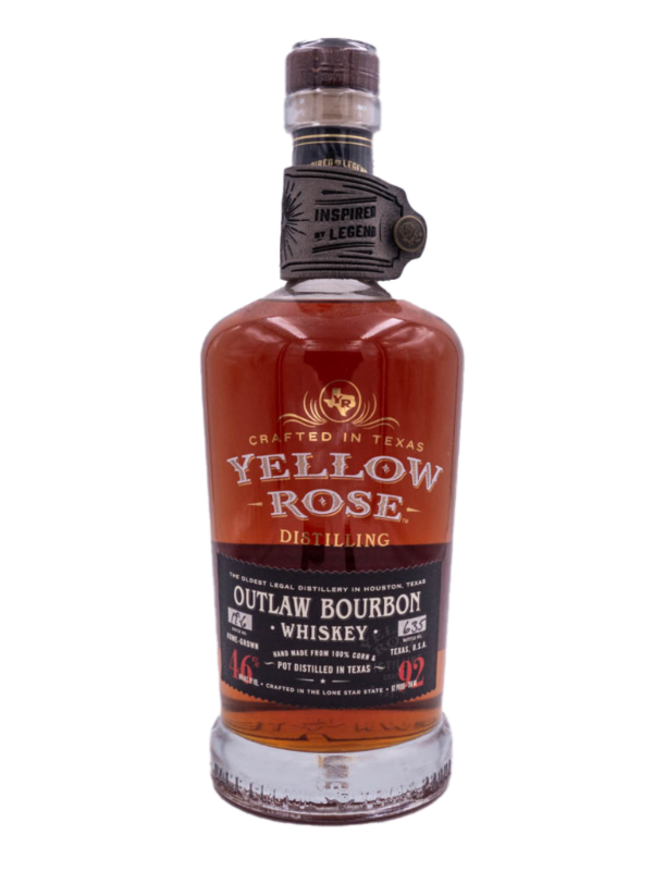 El Yellow Rose Outlaw Bourbon es un whisky americano artesanal de Texas, 100% maíz, envejecido en pequeñas barricas de roble americano, que ofrece notas intensas de caramelo, vainilla y maíz tostado con un toque floral, resultando en un perfil dulce, especiado y amaderado, ideal para beber solo o con hielo, destacando por su carácter único al no seguir todas las reglas estrictas de un bourbon tradicional de Kentucky