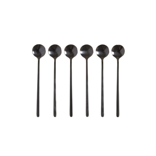 SET X 6 CUCHARAS DE ACERO NEGRO DISEÑO REDONDO 17CM